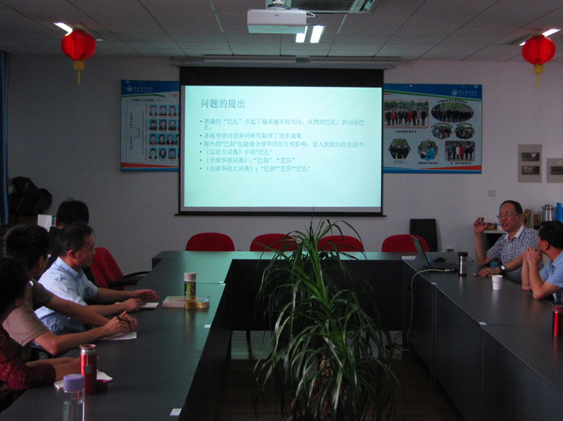 首先,郭熙介绍了本课题的研究来源。在我国新疆及海外的华人社区,语言使用中出现了“巴扎”系列词语,包括巴扎、巴札、巴扎儿、把咱儿、把栅、把杂、把撒尔、巴刹、芭莎等等,而西文中还有bazar、bazzar、pasar、Pazar等等,这就引起了人们对其中相关性的思考。其次,郭熙介绍了他的研究方法及内容。通过文献考证,“巴扎”一词最早出现在1984年出版的《汉语外来词词典》,在使用过波斯语的地区都留下了“巴扎”一词痕迹。今天在东南亚华人社区,“巴扎”的使用出现了泛化的趋势,但是各地的发展的轨迹却不尽相同。接着,郭熙教授把研究的内容扩展到国内与海外华语对于“还钱”、斤值等问题理解与使用差异性的解释,由此提出海外华语作为研究资源和视角的重要价值。最后,郭熙指出,世界各地的华语发展是不平衡的,我们汉语研究需要先礼求诸于野,海外华语是对传统语言研究古-方-普视角的重要补充。