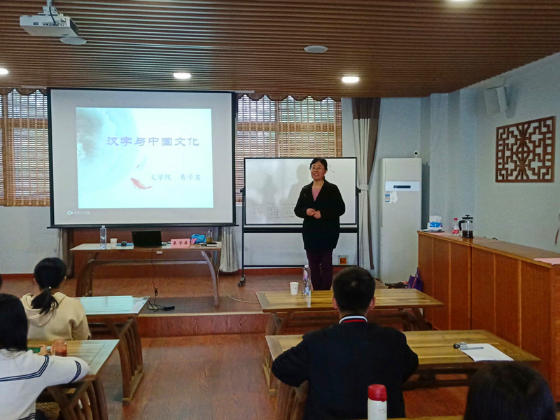 4月10日下午3点,成人在线观看 成人在线观看 副教授、汉语言国际教育系主任栗学英老师受邀在澄典书屋二楼为同学们做了题为《汉字与中国文化》的精彩讲座,这也是我院《澄典大讲堂》的第三十八讲。