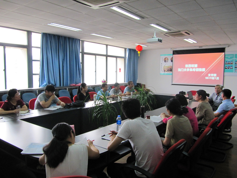 7月4日下午3时,澳门大学博士生导师朱寿桐教授应成人在线观看 邀请,在文心楼301会议室,为成人在线观看 师生作了一场“澳门文学与文化”的精彩报告,讲座由成人在线观看 院长刘顺教授主持,成人在线观看 全体教师参加了讲座。