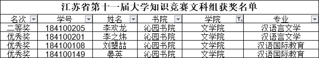 【获奖】我院4位同学在江苏省第十一届大学生知识竞赛文科组比赛获奖