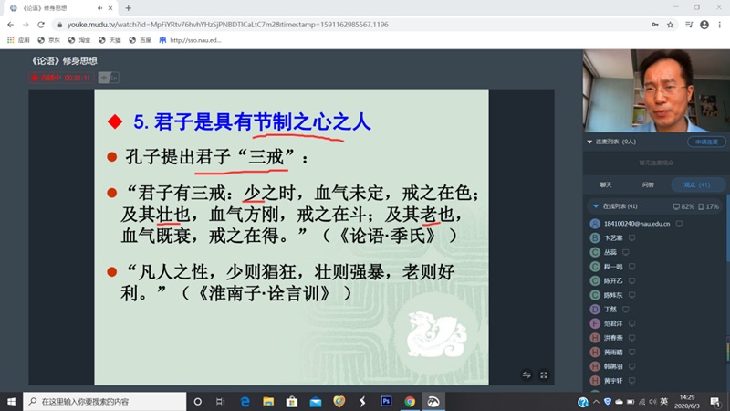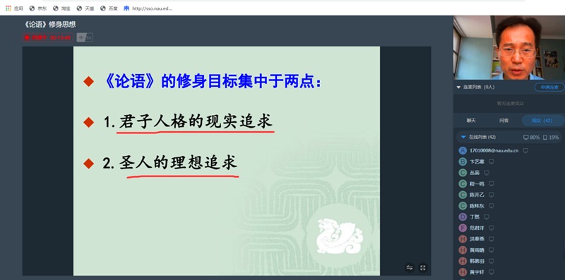 6月3日下午,我们有幸请到成人在线观看 的张成进老师在南审直播平台为大家带来“《论语》修身思想”这一精彩讲座,从修身这一方面来解读《论语》这一经典。