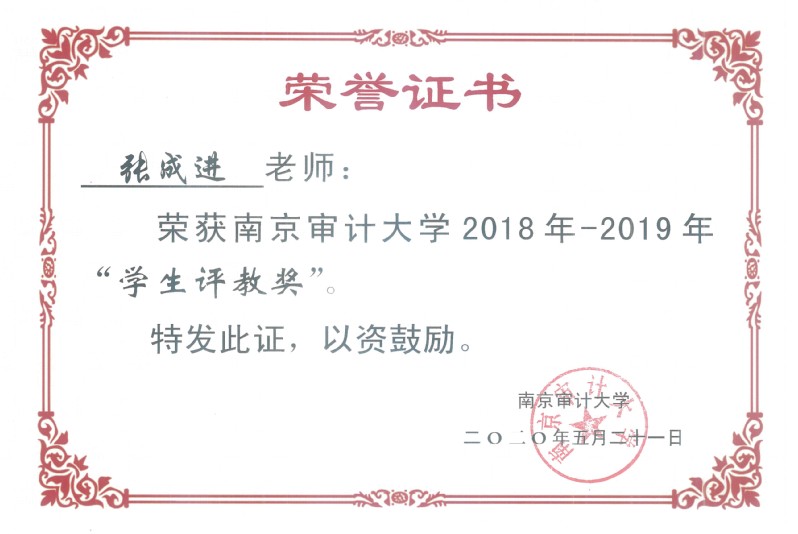 【获奖】我院张成进老师喜获2018-2019学年“学生评教奖”