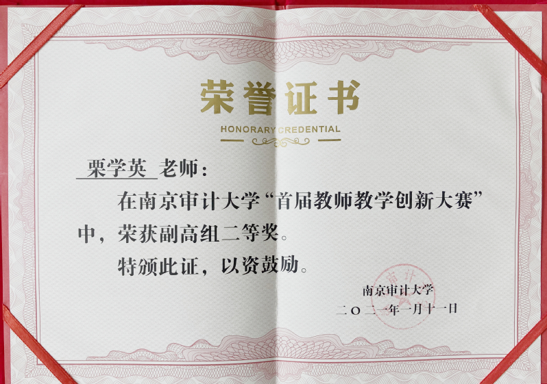 近日,学校发布了《关于公布成人在线观看 首届教师教学创新大赛获奖名单的通知》南审教发〔2021〕7号,我院栗学英、张成进老师,分获副高组二等奖和三等奖。