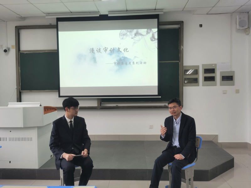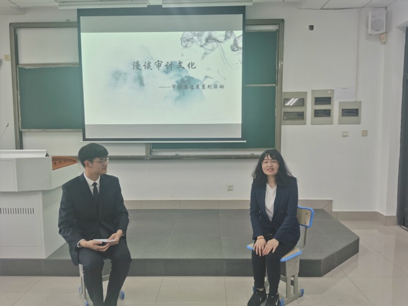 随后邀请审计文化大创项目负责人韩嘉敏、指导教师王军、刘成荣和刘依分别从项目创作感想、审计文化的精神内核、审计文化与中华传统文化、项目申报与指导等方面进行分享,答疑解惑,从审计文化的形成到发展的脉络,使学生有了更深层次的理解。