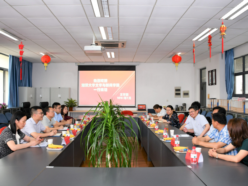 7月7号下午,湘潭大学文学与新闻学院雷磊院长、资义平书记、宋德发副院长、刘晓丽副院长和田华副院长等人应邀来我院进行学科调研与交流活动。此次活动由成人在线观看 副院长朱军教授主持,成人在线观看 刘顺教授、王军书记、洪涛副院长、龚玉兰副院长等人参加。