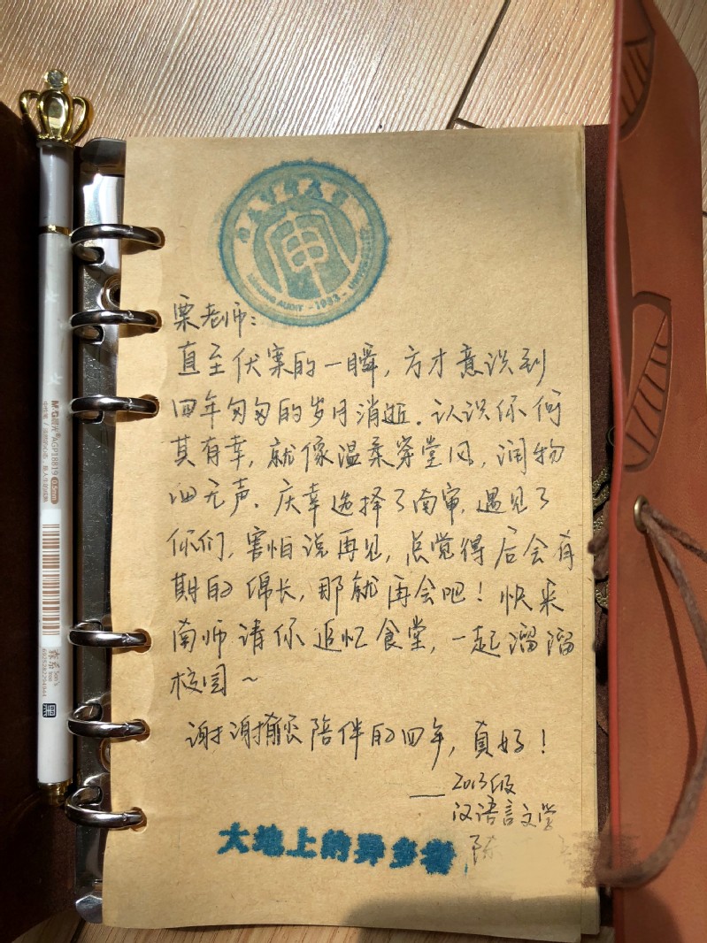 不论是手写稿还是电子稿,栗老师批改的每一份作业都有批注,于是在那汩汩文字的流淌里,爱便有所附丽。她说;“要把每一份作业都当成是同学与老师的交流,同学认真对待每一次作业就是对老师的尊重和对自我的负责,我重视每一次作业,就是对同学负责,回报同学以尊重。”