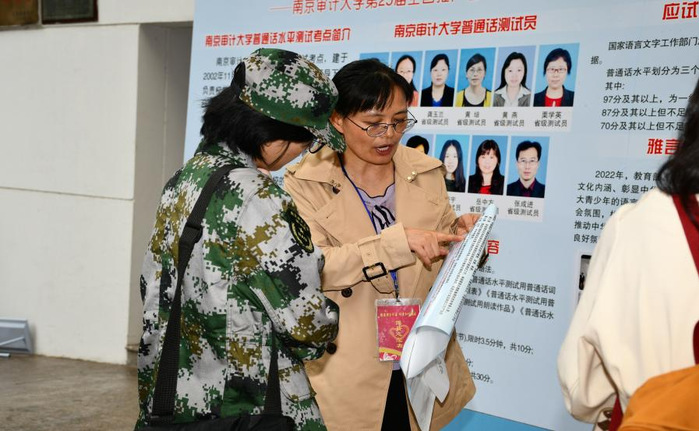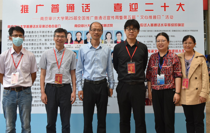 为了充分发挥成人在线观看 省语言文字规范化工作示范单位的作用,进一步提高全校师生的普通话应用能力和语言规范性,9月14日中午,以“推广普通话,喜迎党的二十大”为主题,校语委、校普测考点在沁园餐厅一楼大厅举办了第25届全国推广普通话宣传周活动。活动过程中,副校长陈骏、教务处处长苍玉权来到现场,了解师生的测试需求,对推普工作进行了详细的指导。陈骏副校长对校园推普宣传活动表示赞赏和支持,对校普测考点下半年的测试工作提出具体要求。成人在线观看 全体领导、普通话测试员及推普志愿者参加了活动。