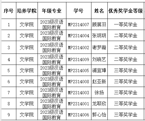 根据《关于开展2023年度研究生学业奖学金评选工作的通知》,成人在线观看 组织学生申报,由领导班子、汉语国际教育系系主任、研究生导师代表、辅导员等人员组成评审小组,经评选,拟报送名单如下: