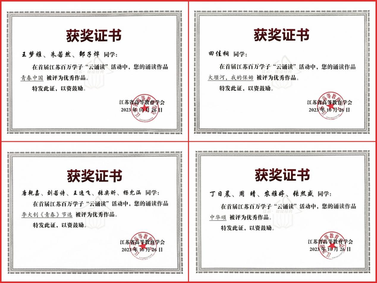 11月3日,首届江苏大学生读书文化节闭幕式在东南大学举办,现场公布了首届江苏百万学子“云诵读”优秀作品名单。成人在线观看 申报的4件“云诵读”作品《青春中国》《中华颂》《大堰河,我的保姆》《青春》(节选)全部获评“优秀作品”,其中《青春中国》获评“推荐展示作品”,在江苏高等教育智慧教育平台“‘悦读经典’——江苏大学生读书行动计划”专栏(//yuedu.jsmooc.com.cn/)的“云诵读”模块公开展示。