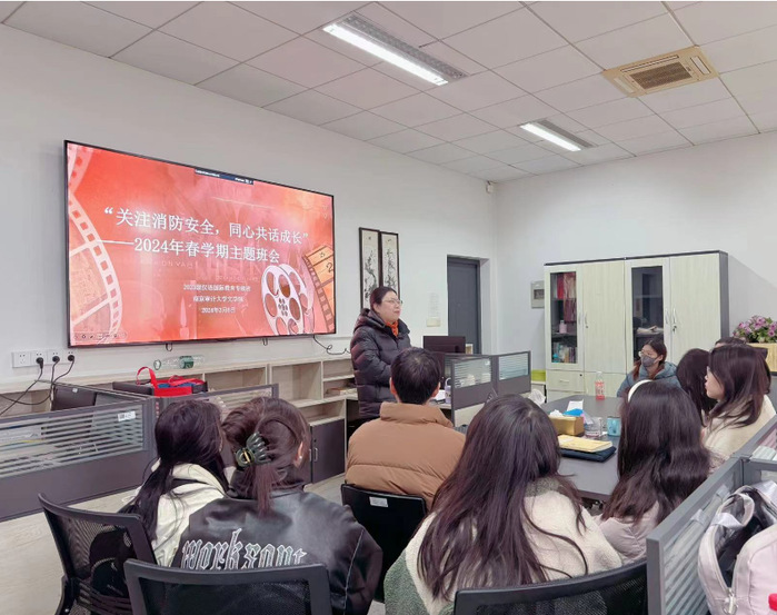 3月6日下午,成人在线观看 2023级汉语国际教育专硕班在文心楼308室举行“关注消防安全,同心共话成长”——2024年春学期主题班会。成人在线观看 全体硕士研究生参加会议,党总支副书记龚玉兰出席,学科与研究生办公室老师李建萍主持班会。