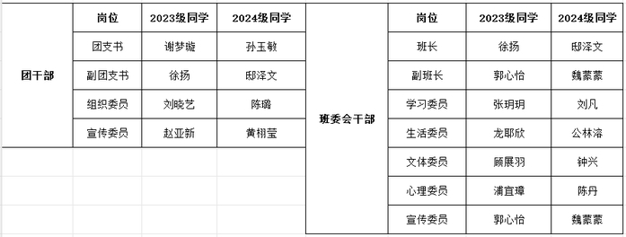 关于成人在线观看 2023级、2024级研究生同学团干部、班委会干部名单的公示